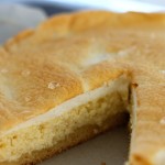 Pasiruošiame pyrago pagrindą. Tortinę išklojame kepimo popieriumi. Sviestą išsukame su cukrumi ir druska, įplakame kiaušinį. Suberiame pusę miltų ir kepimo miltelius, išmaišome. Suberiame likusius miltus ir išminkome vientisą tešlą. Ją dedame į kepimo formą ir pirštais suformuojame, suplojame ploną pyrago pagrindą. Pastatome į šaldytuvą pusvalandžiui.