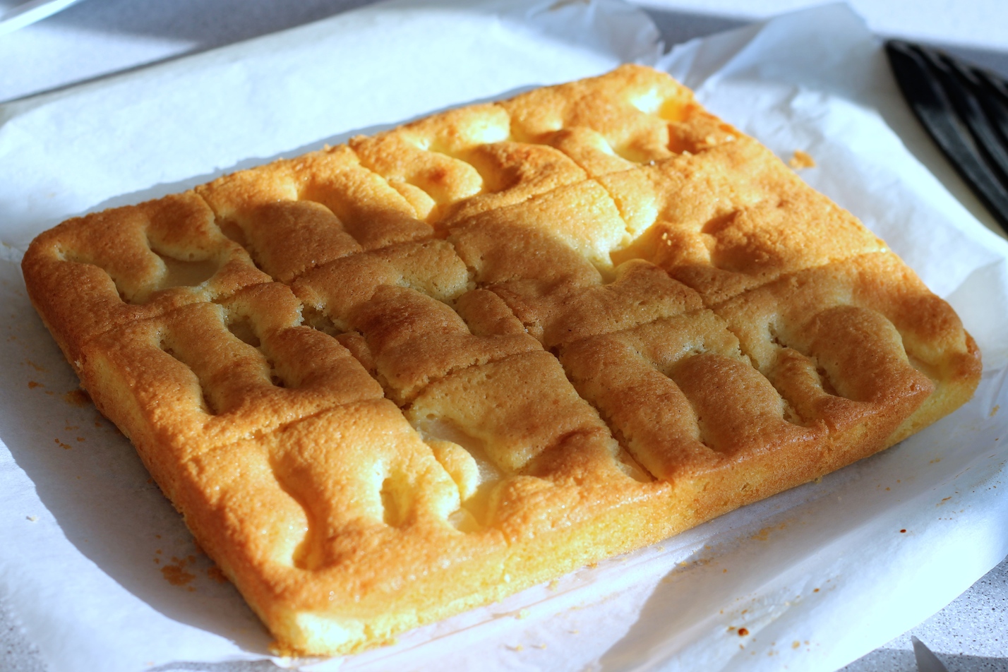 Kepame orkaitėje, įkaitintoje iki 180 °C temperatūros, apie pusvalandį, kol pyragas tolygiai paruduoja. Ar jis iškepęs, patikriname į vidurį įsmeigdami medinį pagaliuką. Skanaus!