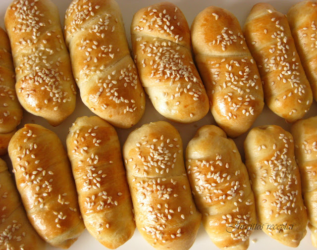 Pieną (arbą pieną, sumaišytą su vandeniu) pašildyti iki kambario temperatūros, suberti cukrų ir mieles. Išmaišyti. Palaikyti apie 15 min., kad mielės suputotų.