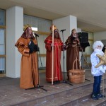 16 valandą Trys Karaliai sveikino miesto gyventojus, susirinkusius šalia miesto eglės ant Radviliškio savivaldybės laiptų. Taip pat savo sveikinimo žodžius tarė Radviliškio miesto mero pavaduotojas Kazimieras Augulis ir miesto seniūnas Leonas Grigaliūnas. Miesto vadovai negailėjo šiltų žodžių miestelėnams ir linkėjo gerų metų bei laimės. Visų susirinkusiųjų ausis sušildė muzikinis Radviliškio vaikų globos namų „Nykštukas“ pasirodymas. Tris daineles karaliams padainavo globos namų auklėtiniai Karolina, Kornelijus ir Eitvydas. Visus šiltai pasveikinus buvo užgesinta kalėdinė miesto eglė, džiuginusi radviliškiečius bei miesto svečius visą šventinį laikotarpį. Ištarę visus sveikinimo žodžius ir šventinta kreida pažymėję savivaldybės duris karaliai iškeliavo toliau skleisti gerų žinių. Visos šventinės programos metu radviliškiečiai galėjo atnešti savo jau nupuoštas Kalėdų eglutes. Jas surinko speciali mašina ir išvežė į Radviliškio šilumos tinklus. Ten jos bus sudegintos ir paverstos šiluma, kuri šildo miesto gyventojus šaltuoju žiemos metu.