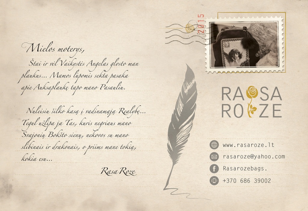 Tiesą pasakius, mane, kaip vaikų pramogų pasaulio raganėlę, labiau domino ne verslas, o renginiai… Kyla kokia nors idėja, jos vedama sukuriu kokį pusšimtį rankinių, parodau jas Kauno moterims ir toliau laukiu, ką Dievulis ar jo lieptas Angelas į sapną atsiųs… Taip netikėtai, bevaikštant po Aleksoto sendaikčių turgų, gimė ir naujausios kolekcijos „Aukso dulkės. Laiškai“ idėja. Labai pagailo kryželiu siuvinėtų paveikslėlių apdulkėjusiais rėmais (juk moterys dirbo, siuvinėjo). Teko man juos visus supirkti („medžiojau“ kiekvieną sekmadienį), dulkes nuskalbti ir sugalvoti, kaip sukurti štai tokių rankinių kolekciją.