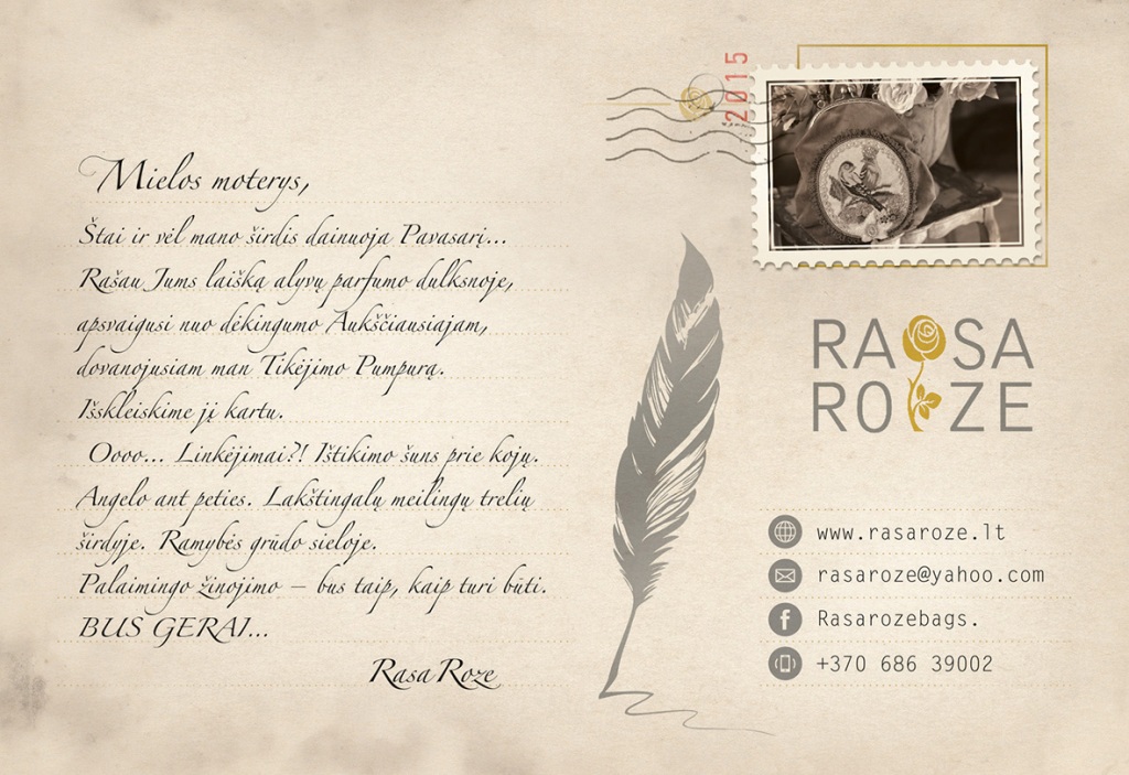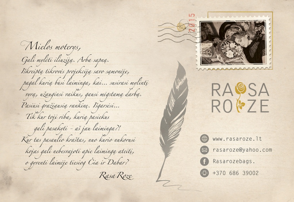 Ar būna, kad žvelgiant į pirmąkart matomą daiktą vidų užlieja nepaaiškinama šiluma, imate smalsauti, kas ir koks tas žmogus, kurio rankos jį tokį sukūrė?.. Netikėtai išvystos ramybe, romantika ir paslaptingumu dvelkiančios vienetinės rankų darbo rankinės užminė mįslę apie jų kūrėją ir paskatino leistis į daug žadančią pažintį. Nuoširdus ir šiltas bendravimas, gerumu ir išmintimi spinduliuojančios akys, užkrečianti šypsena, neeilinis iškalbingumas ir kuklumas – tai, kuo iškart sužavi rankinių dizainerė Rasa Rožinskienė. O ar galite patikėti, kad šių metų balandžio pabaigoje savo trečiąją kolekciją pristačiusi auksarankė, pirmąją rankinę sukūrė vos prieš dvejus metus? Šiame interviu Rasa pasakoja, kaip vienas atsitiktinumas pakeitė jos gyvenimą ir padėjo iš naujo atrasti save, ir savo pavyzdžiu drąsina moteris, kurios galbūt dar nesijaučia laimingos, ieškoti savęs, nes tai daryti niekada nėra per vėlu.