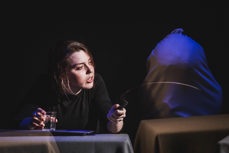 Žiūrovai išvys pagrindinės spektaklio veikėjos akistatą su savo sąmonės agresoriais priimant lemtingą sprendimą. Tai panašu į abejotiną sprendimą priėmusios sielos kelionę per skaistyklą, kurioje susiduriama su prieštaromis, kaltėmis, savo akluoju „aš“ ir tuo „aš“, kuris dar tik ruošiasi gimti. Tačiau tariamoje realybėje yra vienas didelis pliusas − ji fiktyvi. Vadinasi, viską dar galima pakeisti, juk žmogus visada turi daugiau nei vieną alternatyvą.