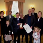 E. Nekrošiui išskirtinį apdovanojimą Italijos prezidento Giorgio Napolitano vardu Vilniuje įteikė ambasadorius Stefano Taliani de Marchio. Ta proga ambasadorius su žmona Letizia į savo rezidenciją pakvietė E. Nekrošių su žmona kostiumų dailininke N. Gultiajeva, teatro „Meno fortas“ darbuotojus, režisieriaus šeimą. Itališkai nuoširdžioje ir net šeimyniškoje aplinkoje ambasadorius S. Taliani de Marchio sakė, jog apdovanojimas lietuvių režisieriui skiriamas už ilgametį dalyvavimą Italijos teatro gyvenime kasmet pristatant įvairių miestų žiūrovams savo lietuviškus spektaklius, už unikalią galimybę italų aktoriams ir studentams mokytis iš maestro per meistriškumo kursus ar Nekrošiui statant spektaklius Italijoje su vietiniais aktoriais. Ambasadorius atkreipė ypatingą dėmesį į E. Nekrošiaus darbą Vičencos miesto istoriniame „Olimpico“ teatre, kurio sezonams jis vadovavo 2012 ir 2013 metais. Čia režisieriaus sukurti spektakliai „Laiškai Lucilijui“, „Galilėjaus gyvenimas“ ir kiti paliko neišdildomą įspūdį ne tik žiūrovams, tarp kurių buvo ir pats ambasadorius, bet ir istorinio teatro šeimininkams. Baigdamas protokolinę jaukios popietės dalį, ambasadorius kaip trečią priežastį apdovanoti E. Nekrošių įvardijo tai, kad jis tiesiog myli Italiją. Tai pastebima visuose jo spektakliuose, ypač sukurtuose pagal Dantės „Dieviškąją komediją“.
