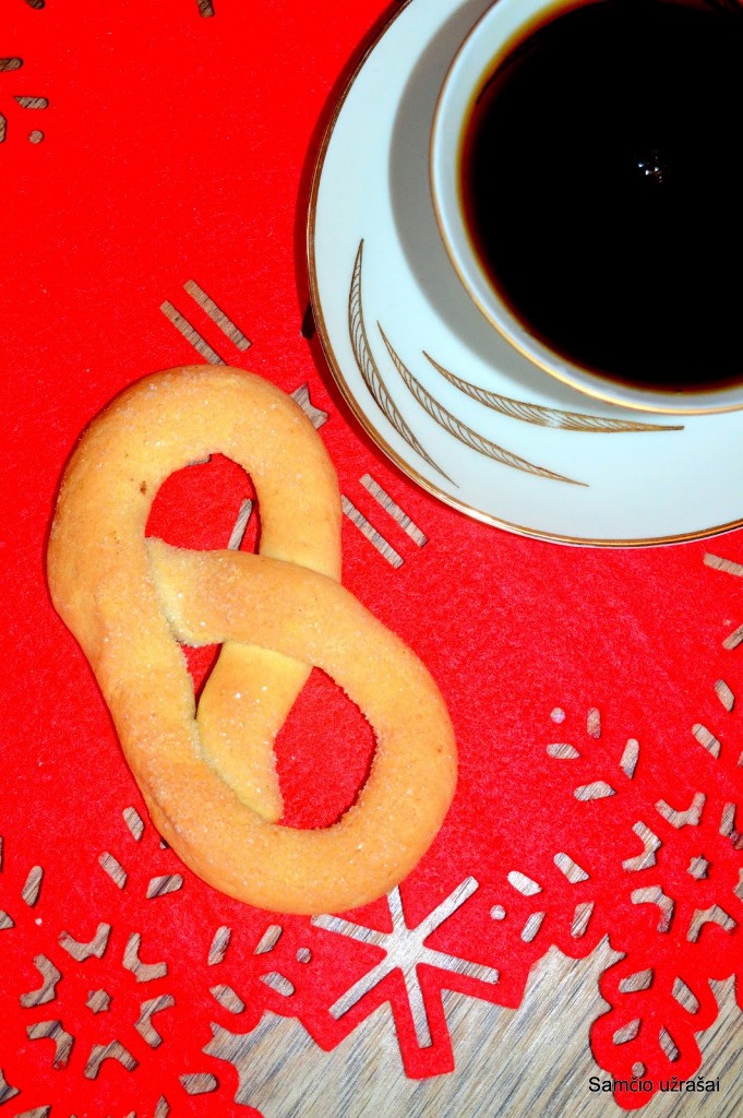 Šaltą sviestą sutarkuoti burokine tarka, įberti cukrų, vanilinį cukrų ir gerai sumaišyti. Įmušti kiaušinius, išsukti iki vientisos masės, suberti miltus, sumaišytus su kepimo milteliais, ir gerai išminkyti. Tešlą trumpam padėti į šaldytuvą.