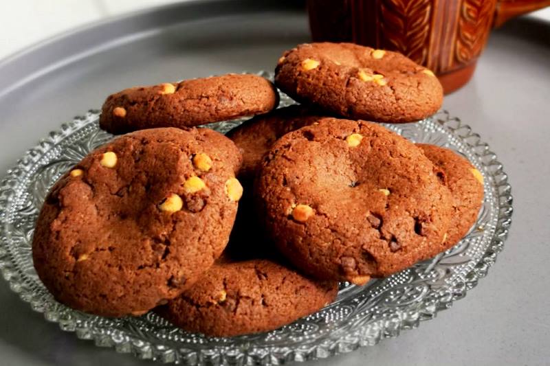 Įkaitinkite orkaitę iki 180 °C. Skardą išklokite kepimo popieriumi. Kiaušinį išplakite su cukrumi iki vientisos masės, dėkite riešutų sviestą, šokolado gabaliukus ir berkite kakavą. Gerai išmaišykite. Šaukštu formuokite sausainius skardoje. Kepkite 10–15 min., kol sausainiai iškeps. Atvėsinkite.