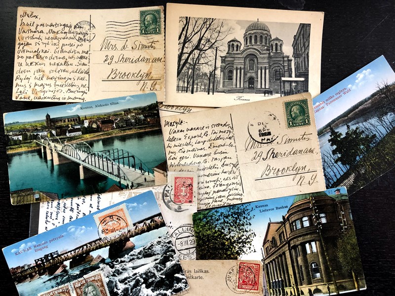 Dažnai man įdomiau ne tai, kas pavaizduota, o kas parašyta atviruke. Kartą man pasisekė įsigyti iškart šešis atvirukus, priklausiusius vienam žmogui. Ant visų pavaizduotas Kaunas. Įdomus faktas yra tai, kad jie visi buvo siųsti iš Pitsbergo Pensilvanijoje į Brukliną Niujorko valstijoje. Valandėlė internete ir išsiaiškinau, kad siuntėjas yra Leonardas Šimutis – aktyvus JAV lietuvių bendruomenės narys ir Lietuvos politinis veikėjas, publicistas, žurnalistas, ilgametis „Draugo“ redaktorius. Visuose 1924 metų atvirukuose be galo šilti Leonardo Šimučio žodžiai žmonai, kurie lyg dienoraštis pasakoja, kaip jam sekasi komandiruotėje. Atvirlaiškiai rašyti plunksna; labai gražus, estetiškas raštas.