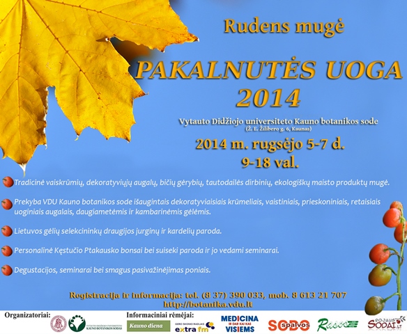 Pirmąjį rugsėjo savaitgalį VDU Kauno botanikos sode vyks jau tradicine tapusi rudens mugė „Pakalnutės uoga“.