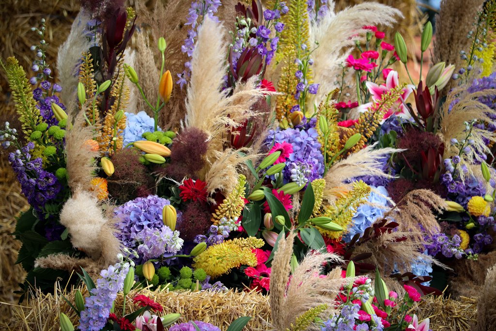 Spalvų žaismui išgauti sunaudota daugiau nei tūkstantis įvairiaspalvių gėlių – balkšvių, lelijų, gvazdikų, delfiniumų, gerberų, pūkenių, pampų, jurginų, hortenzijų ir kt. Anot floristės, daugelis žmonių netgi klausia, ar šios gėlės dirbtinės. Daugelis pripratę, jog ryškios spalvos dažnai būna nenatūralios. Evelina pasakoja, jog kasmet dirbama tik su gyvomis ir netgi nedažytomis gėlėmis, nes siekiama atskleisti tikrą ir gyvą gamtos grožį. „Tikime, jog ryškios spalvos džiugins žmonių akis ir širdis iš tolo, suteiks optimizmo, privers nusišypsoti. Iš gėlių gausos kiekvienas atras sau mielą žiedą“, – viliasi floristė.