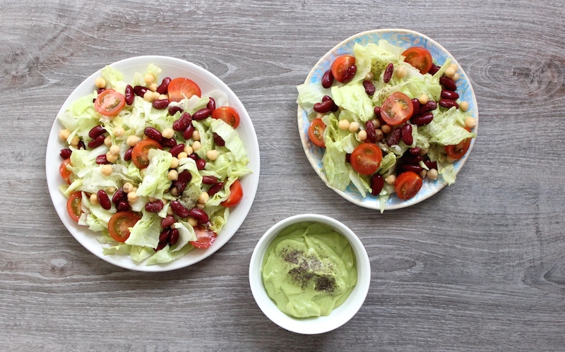 Kremą gerai išmaišykite su salotomis ir patiekite lėkštėse.