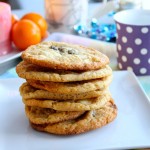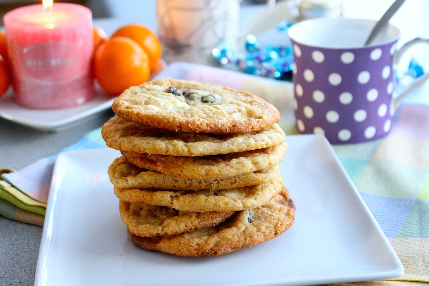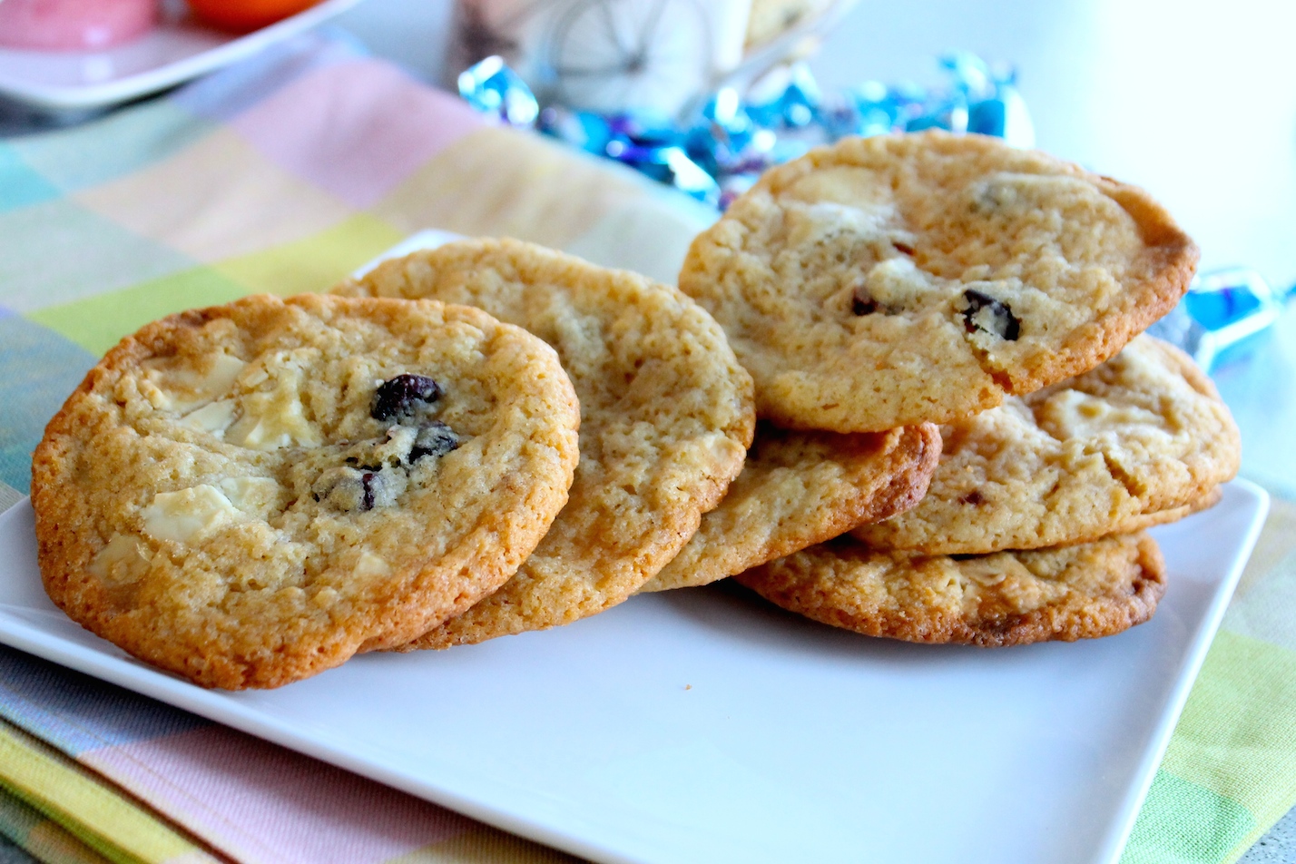 Labai saldūs, viduryje šiek tiek tąsūs, o krašteliuose trapūs sausainiai. Aš į tešlą sugalvojau įberti džiovintų spanguolių, kitą kartą jų dėčiau dar daugiau. Jų rūgštelė yra puiki atsvara šokolado saldumui.