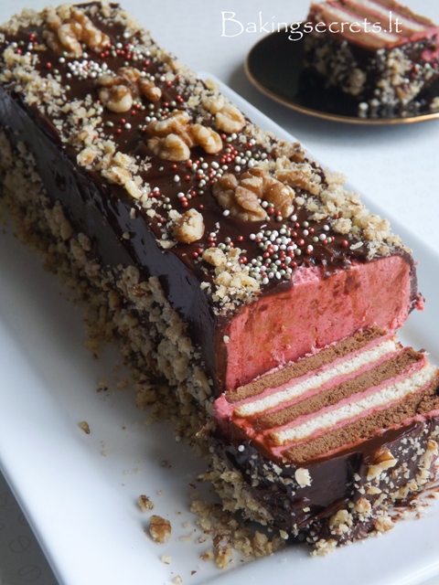 Gardus sausainių vyniotinis su uogienės kremu, šokoladiniu glajumi ir riešutais. Labai įdomi idėja ir paprastas gaminimo procesas.