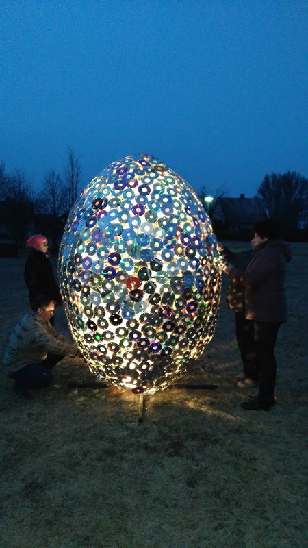 Kaip vieną iš originalių bendruomenės idėjų I. Braziulienė išskiria 2016 metais kaimo parke papuoštą didelį (3,5 m aukščio ir apie 3 m pločio) margutį, dekoruotą daugiau nei 2500 kompaktinių plokštelių ir apšviestą iš vidaus. Auksūdiškiai tąkart džiaugėsi išties įspūdingu reginiu. Pernai bendruomenininkams taip pat nestigo sumanumo – tas pats karkasas buvo dekoruotas pripučiamais gelbėjimo ratais. Tai, pasak pašnekovės, – puikus bendradarbiavimo tarp bendruomenės ir verslo pavyzdys: bendruomenė pasiūlė idėją, o įmonė „Taulidas“ padėjo ją įgyvendinti.