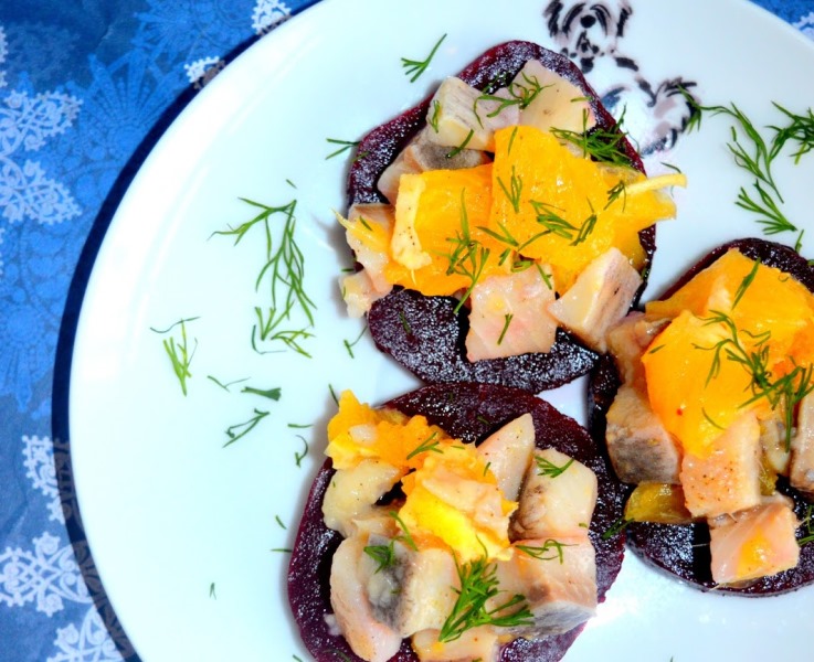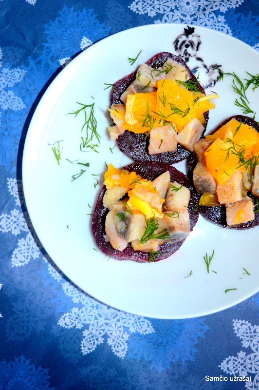 Šis derinukas neįprastas, bet tikrai skanus. Jeigu mėgstate silkės ir burokėlių derinį, tai į kompaniją būtinai priimkit ir apelsiną…