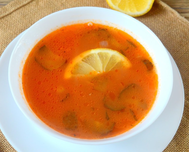 Į užvirusį sultinį beriame ryžius ir išverdame. Kai ryžiai išverda, dedame keptuvės turinį, agurkus, pamaišome ir paverdame dar kelias minutes.