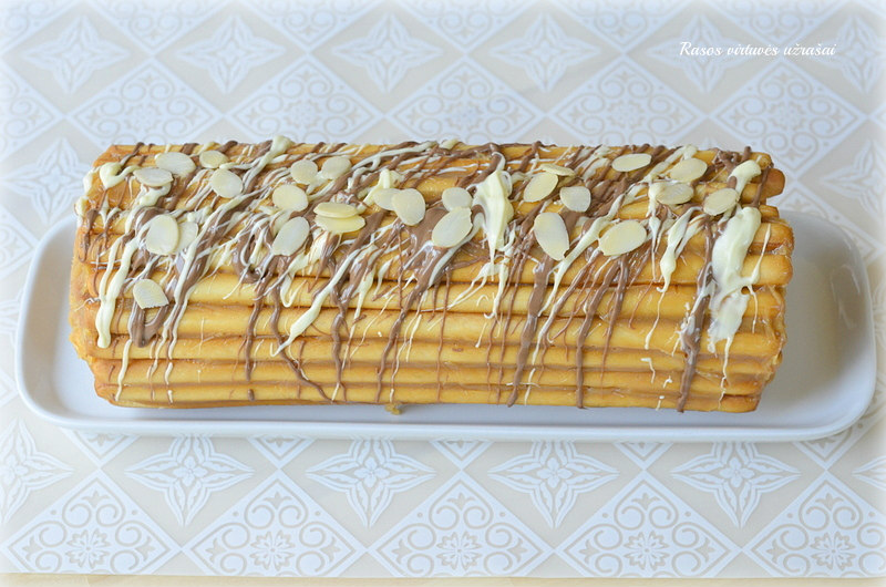2 pakelių (po 125 g) duonos lazdelių (nesaldžių) arba 500 g saldžių šiaudelių,