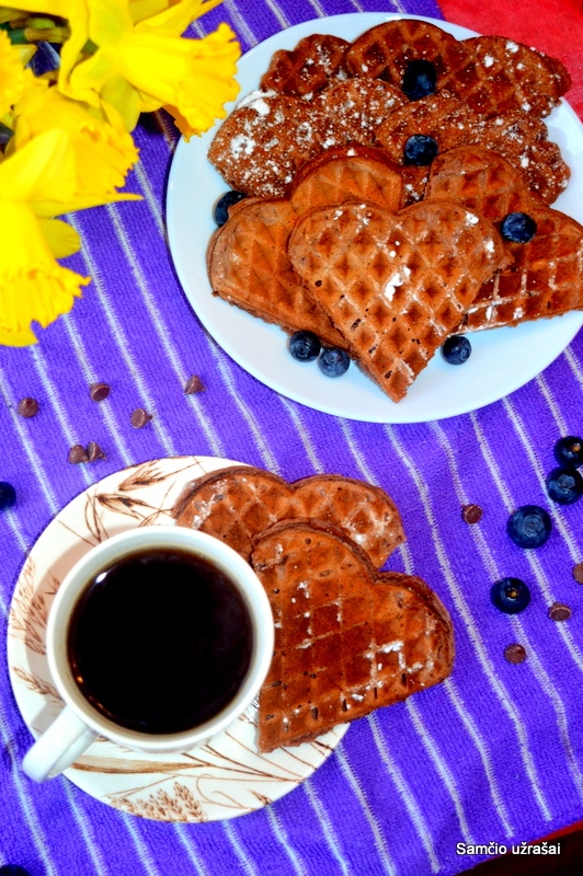 Širdelių vaflinę įkaitiname ir kepame blynus.