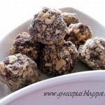 Pastatome masę į šaldytuvą, kad ji gerai atvėstų ir pradėtų tirštėti. Tada dar kartą išmaišome ir įmaišome smulkintus vaflius. Stingdome viską šaldytuve, kol masė taps tokios konsistencijos, kad būtų galima formuoti triufelius (aš palikau visai nakčiai).