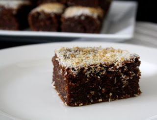 Supilame tešlą į paruoštą formą, pabarstome kokoso drožlėmis ir kepame 30 minučių. Atvėsiname ir galime pjaustyti.
