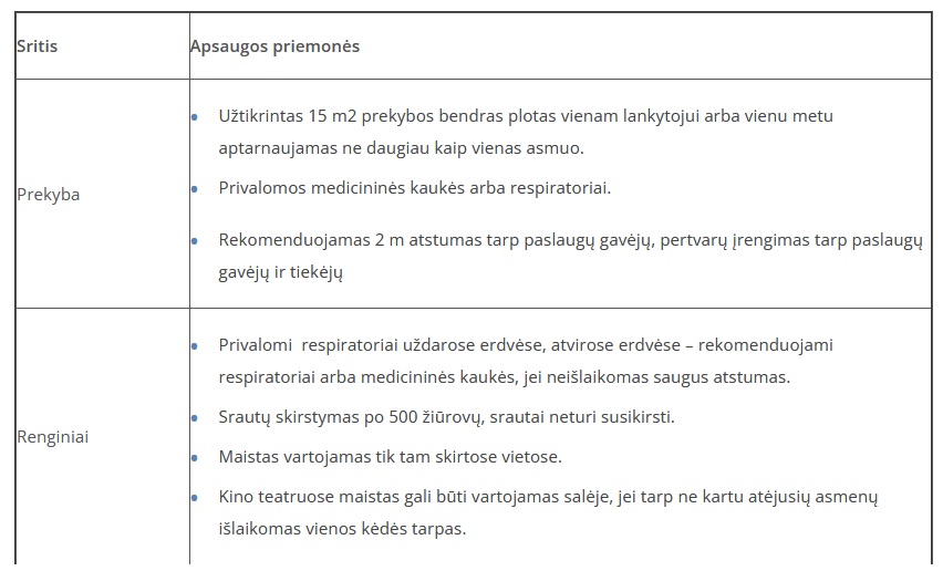 Nuo š. m. vasario 5 d. toliau galios šios standartinės pagrindinės infekcijų kontrolės ir asmenų apsaugos priemonės: