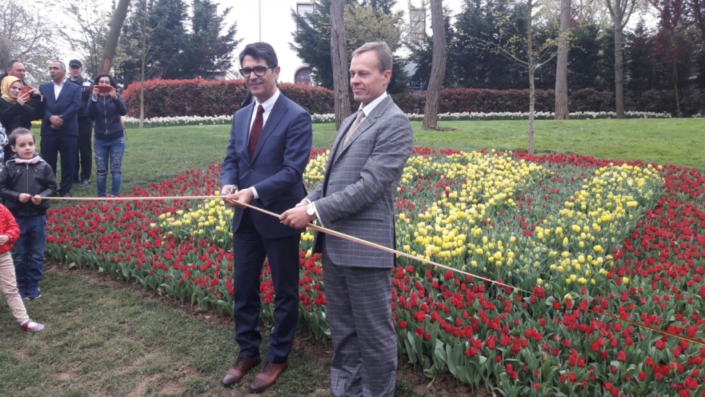 Balandžio 14 dieną Stambulo Emirgano parke įvyko oficialus tulpių kompozicijos, vaizduojančios Gediminaičių stulpus, atidarymas. Gediminaičių stulpų kompozicija pasirodė garsiajame Stambulo tulpių festivalyje, kuris yra rengiamas jau tryliktus metus iš eilės ir vyksta balandžio mėnesį.