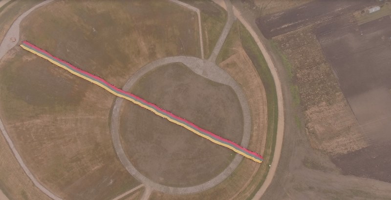 Sveikinant Lietuvą Naisiuose išskleista įspūdinga vėliava