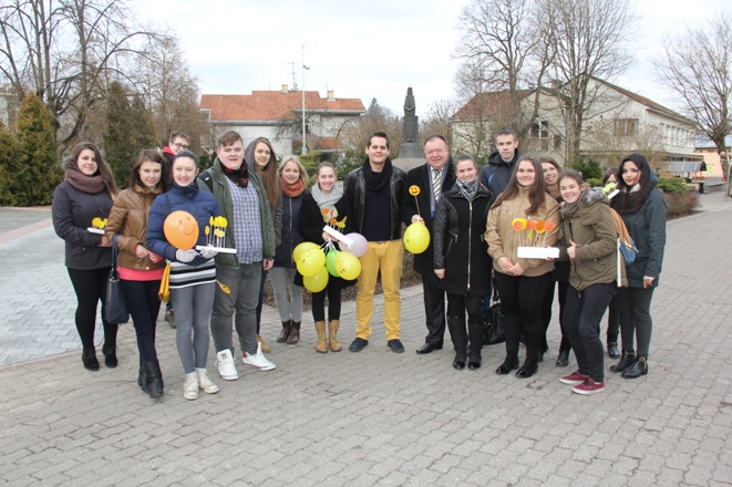 Akcijos simbolį – popierinę šypsenėlę – aktyvus jaunimas įteikė ir Druskininkų savivaldybės mero pavaduotojui Linui Urmanavičiui. „Žaviuosi kūrybingu ir iniciatyviu jaunimu. Džiugu, kad jauni žmonės nestokoja originalių idėjų ir įsitraukia į miesto kultūrinį gyvenimą. Dėkoju klasės auklėtojui, subūrusiam jaunimą. Šiandien jie sukūrė šventę sau ir kitiems“, – sakė L. Urmanavičius.
