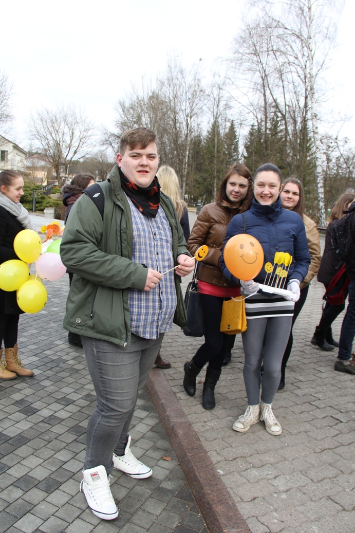 Penktadienį Druskininkų „Ryto“ gimnazijos 3Ė klasės mokiniai ir klasės auklėtojas Nerijus Dzingelevičius surengė netikėtą akciją – išdalijo 100 popierinių šypsenėlių druskininkiečiams. Akcija skirta paneigti mitui, kad trylikta diena penktadienis yra nesėkminga.