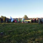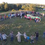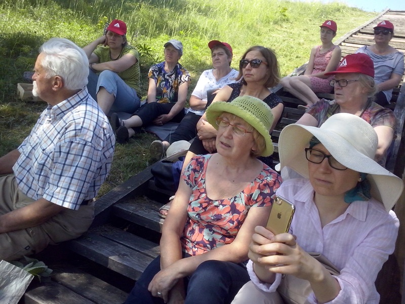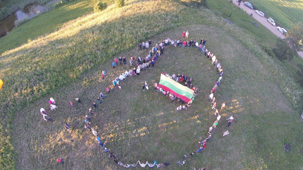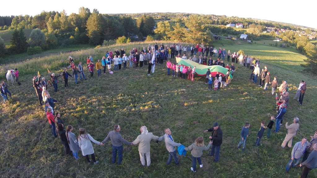 Atėjus iki piliakalnio džiugias emocijas sustiprino nemažas būrys laukiančiųjų. Žvalgantis vieniems į kitus užvaldė jausmas, lyg būtume giminės susitikime. Istoriniam momentui suvienijus visus susirinkusius nepraleista progos padainuoti kartu su „Tautiškos giesmės“ šaukle, kraštiete Vilma Kurpyte. Ir kaip nedainuosi, kai šalia operos dainininkės Vilmos su smuiku griežia Liutauras Milišauskas ir stipriu balsu pritaria taip pat užpalietė LNOBT dainininkė Daina Ivanauskaitė.