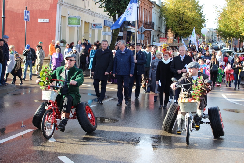 Šventė prasidėjo iškilminga eisena, pasileidusia Respublikos gatve nuo Telšių Žemaitės dramos teatro iki Turgaus aikštės. Nuotaikingai išsirikiavo visos Telšių rajono ir miesto seniūnijos, organizacijos ir įstaigos. „Turgaus 2017“ akcentas – rudens turtais ir gėrybėmis papuoštas dviratis. O čia jau žemaičiai pasistengė ir negailėjo savo išmonės… Smagu, kad eisenoje dalyvavo ne tik suaugusieji, bet ir gausus būrys vaikučių, stumiančių dviratukus bei paspirtukus. Eiseną priekyje vedė Telšių miesto seniūnijai atstovaujantys triračiais pakalnėn riedėdami du puikūs „ūkininkai“ Linas ir Vaclovas (Telšių kultūros centro darbuotojai).