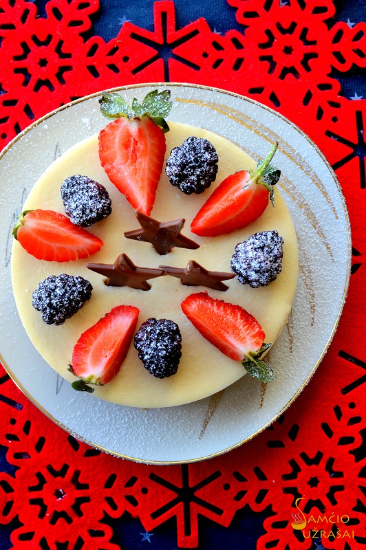 Aš gaminau iš pusės normos, tad išėjo mažutis (18 cm skersmens) pyragas.