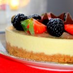 Sausainius susmulkinkite iki smulkių gabaliukų ir išmaišykite su lydytu sviestu. Sausainių mase išklokite torto formos dugną.