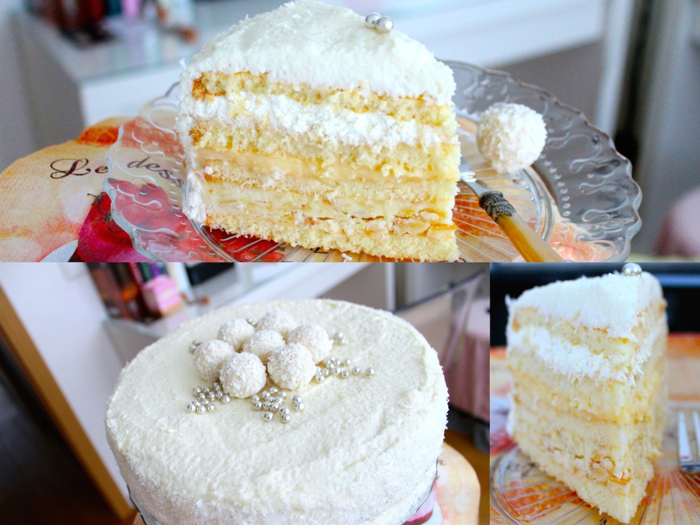 TREČIASIS KREMAS. Šaltą grietinėlę standžiai suplakame su cukrumi ir vanile, įmaišome kokoso drožles ir pastatome į šaldytuvą.