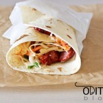 Orkaitėje arba keptuvėje pašildykite tortilijas.