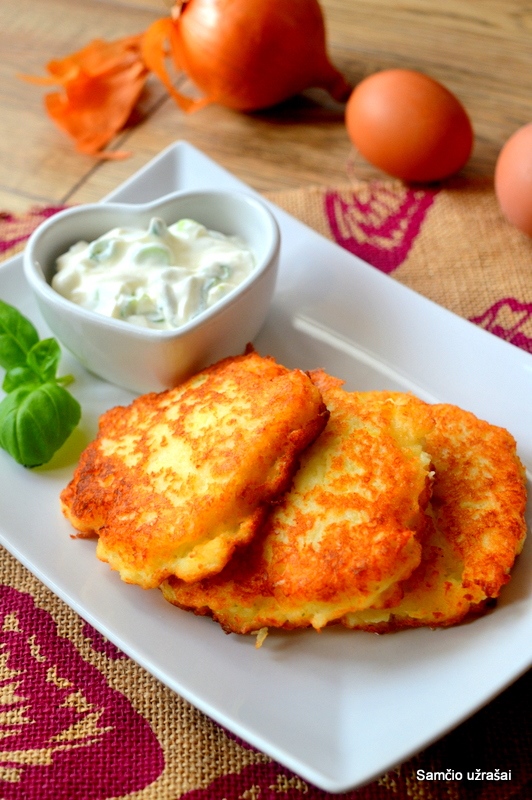 Keptuvėje įkaitinkite aliejų ir su šaukštu formuokite blynus.
