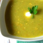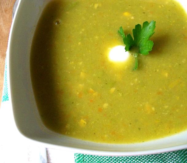 Išvirusią sriubą ir konservuotus kukurūzus supilkite į maisto smulkintuvą ir gerai susmulkinkite. Dar kartą supilkite į puodą ir užvirinkite. Patiekite pagardintą šaukštu lieso natūralaus jogurto ir šviežiomis petražolėmis. Skanaus!