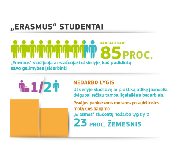 Naujo ES studentų mainų programos „Erasmus“ poveikio tyrimo duomenimis, tarptautinės patirties turintiems absolventams darbo rinkoje sekasi kur kas geriau. Palyginti su tais, kurie užsienyje nestudijavo ir nesistažavo, šie absolventai dvigubai rečiau patiria ilgalaikį nedarbą, o praėjus penkeriems metams po aukštosios mokyklos baigimo jų nedarbo lygis yra 23 proc. žemesnis. Nepriklausomų ekspertų parengtame tyrime dalyvavo beveik 80 000 respondentų (tarp jų studentai ir įmonių atstovai). Tai didžiausias tokio pobūdžio tyrimas.