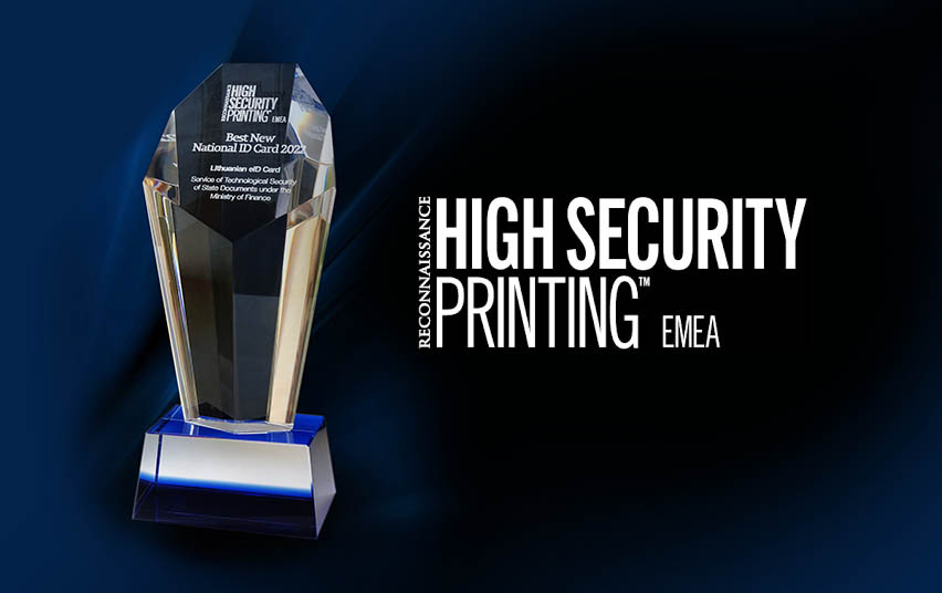 Taline vykstančioje kasmetinėje tarptautinėje konferencijoje aukščiausio apsaugos lygio spaudos klausimais Europoje, Viduriniuose Rytuose ir Afrikoje (High Security Printing EMEA) Lietuva gavo apdovanojimą už geriausią nacionalinę asmens tapatybės kortelę.