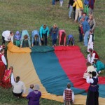 Stiprus vėjas ir lietus neišgąsdino susirinkusiųjų į šventę. Įspūdingo dydžio, pusantro šimto metrų, trispalve piliakalnio pievą kartu su kraštiečiais apjuosė Kėdainių rajono savivaldybės meras Saulius Grinkevičius su žmona Aldona, Seimo narė Virginija Baltraitienė, tarybos nariai Antanas Mikalauskas ir Darius Petrauskas, Surviliškio seniūnijos seniūnė Vanda Petrauskienė.