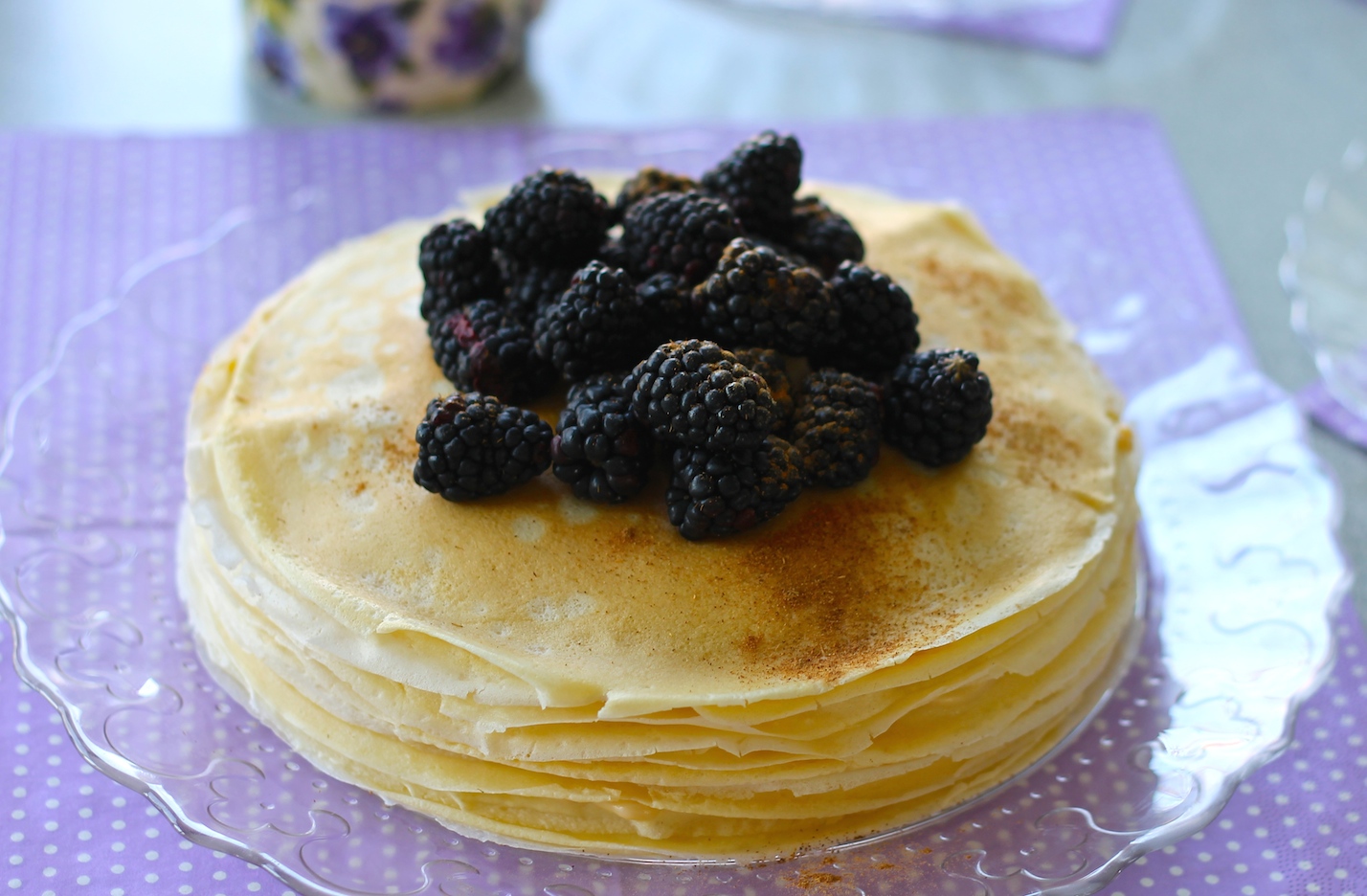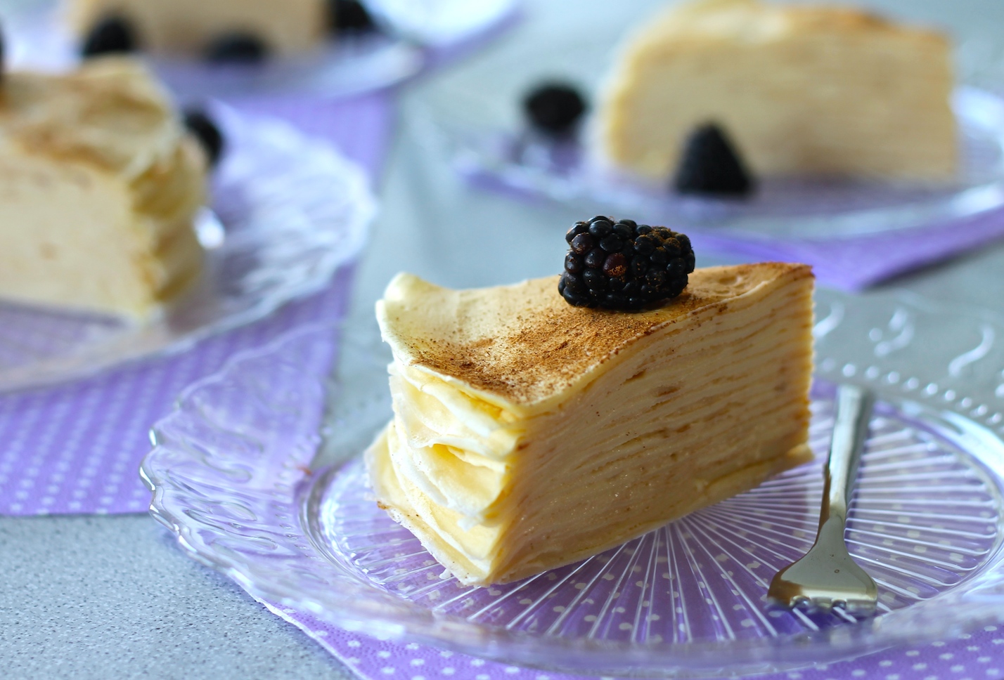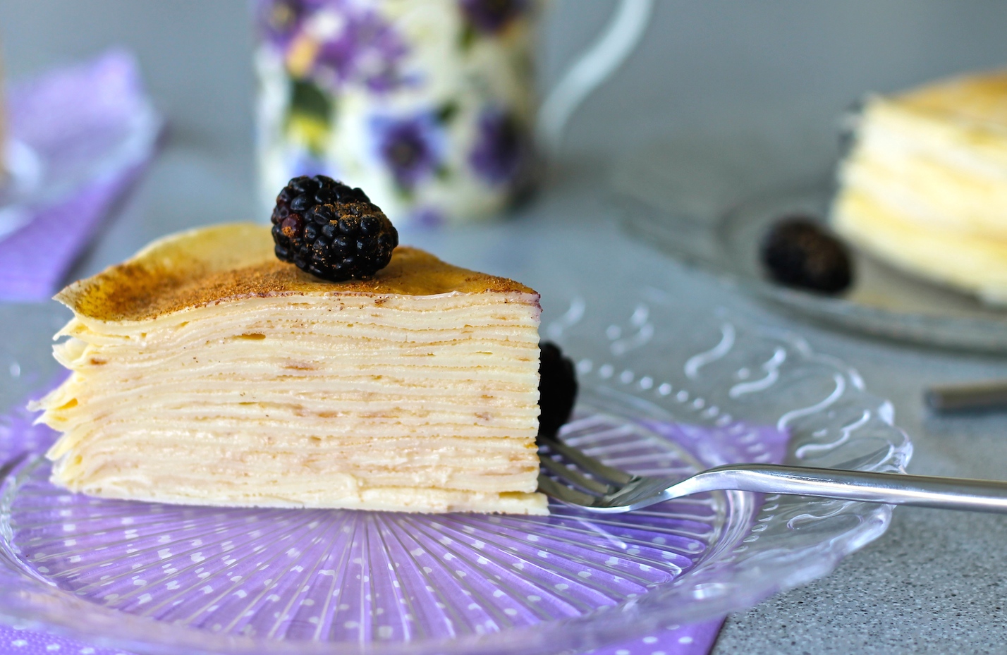 Tai nėra toks tortas, į kurį galima įsmeigti gimtadienio žvakutes. Veikiau jau įdomesnė lietinių blynų versija, nes porcijos skirstomos kiek kitaip – ne atskirais blyneliais, o štai tokiais gražiais tortiškais gabalėliais. Vanilinis kremas be galo gardus. Desertas nėra labai saldus, tačiau smaližiai liktų patenkinti.