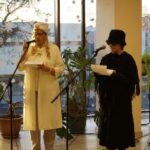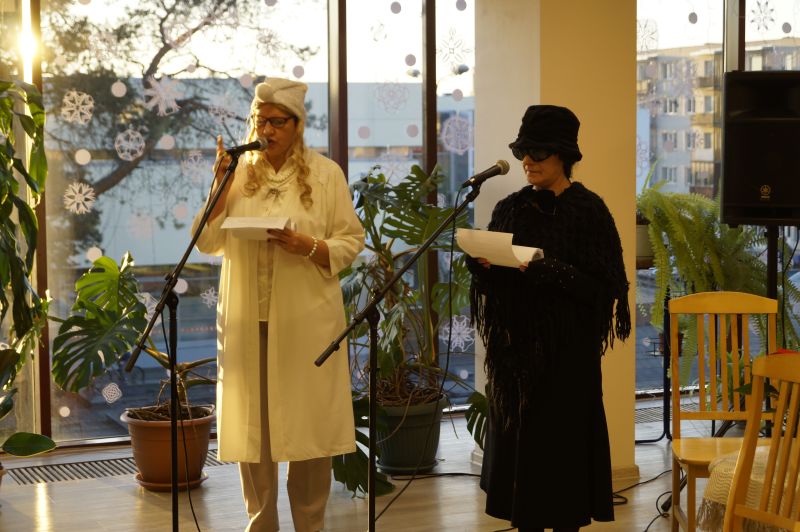 Varėnos viešosios bibliotekos istoriją pusiau juokais, pusiau rimtai pristatė Juodasis ir Baltasis metraštininkai (jų vaidmenis sukūrė Bibliografijos, informacijos ir kraštotyros skyriaus darbuotojos Elena Glavickienė ir Laimutė Cibulskienė).