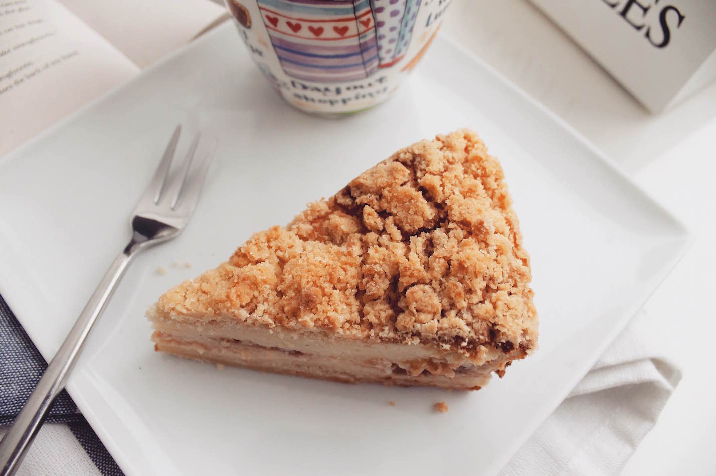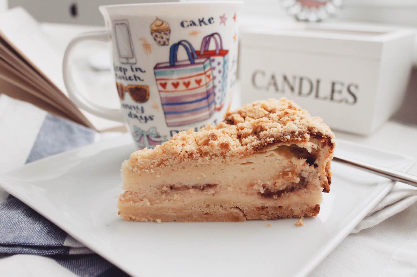 Į nemažą kepimo formą (naudojau 26 cm skersmens) suberiame pusę trupinių, juos tolygiai paskirstome ant dugno. Ant viršaus pilame pusę varškės masės, uždedame džemo, supilame likusią varškę. Likusius tešlos trupinius užbarstome ant viršaus.