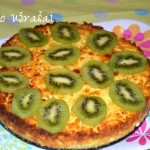 Apdėliojame kepinį riekutėmis pjaustytais kiviais, užpilame apstingusią želę ir statome į šaldytuvą pusvalandžiui. Želė įsigeria į pyragą, tačiau sutvirtina kivius.