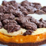 Pakeptą pyragą ištraukiame, ant viršaus šaukšteliu išdėliojame likusią tešlą. Vėl pašauname kepti. Po pusvalandžio išimame iš orkaitės, leidžiame atvėsti. Kelias valandas palaikome šaldytuve, o tada jau skanaujame.