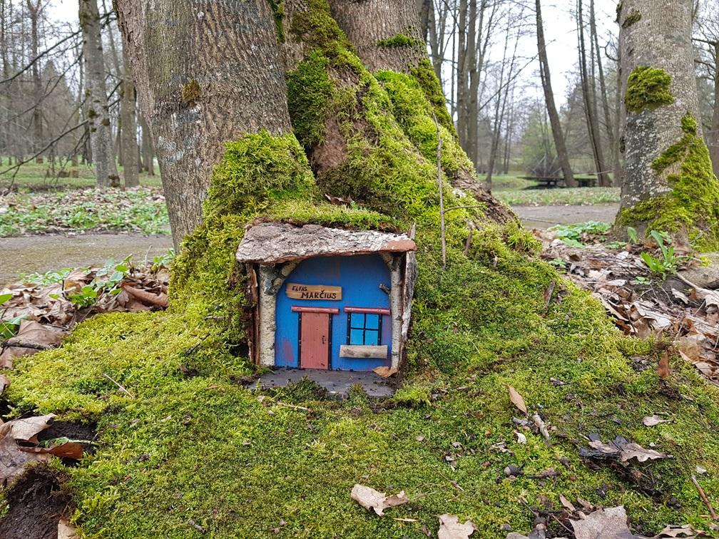 Vos sprindžio dydžio nameliai su miniatiūrinėmis detalėmis ima dygti Vytauto Didžiojo universiteto Botanikos sode. Link vaikų žaidimų aikštelės keliaujantys smalsieji sodo lankytojai turi būti akyli – senuose kelmuose ar medžių pašaknėse jie gali išvysti Gedimino Visockio kūrinius.