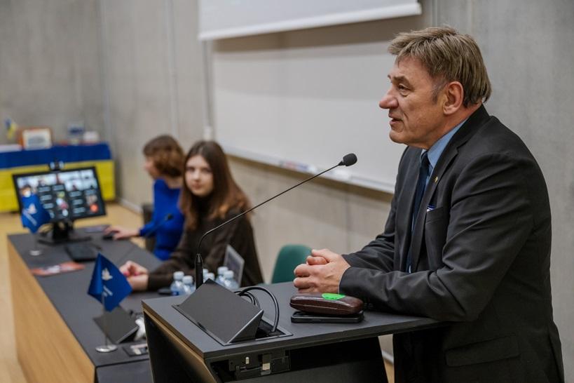 „Mes visi esame su jumis. Šis metas yra labai svarbus Ukrainai, Europai ir visam demokratiniam pasauliui. Tikiu, kad kartu eisime iki pergalės“, – renginio pradžioje susirinkusiuosius pasveikino VDU rektorius prof. Juozas Augutis, kviesdamas prisidėti prie paramos.