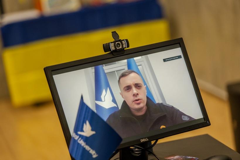 Nuotoliniu būdu prie renginio prisijungė Mariupolio valstybinio universiteto (MVU) rektorius Mykola Trofymenko. Jis padėkojo VDU už nuolatinį palaikymą ir pažymėjo, jog MVU šiuo metu yra kaip humanitarinis centras ir Mariupolio identitetą saugantis universitetas, skatinantis pilietiškumą ir organizuojantis įvairias veiklas, skirtas miesto bendruomenei ir paramos ukrainiečiams rinkimui.