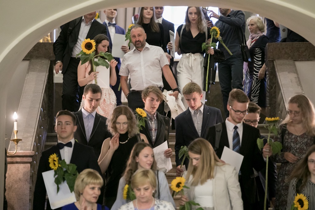Egzaminai sostinės abiturientams šiemet buvo sėkmingi – vilniečių rezultatai geriausi visoje Lietuvoje. Brandos atestatuose vienas ar daugiau šimtukų įrašyta net 629 abiturientams, o tai yra net 15 proc. visų šiemet baigusių mokyklas. 160 abiturientų gali didžiuotis gavę du ir daugiau šimtukų. Šv. Kotrynos bažnyčioje juos visus pasveikino Vilniaus meras Remigijus Šimašius.