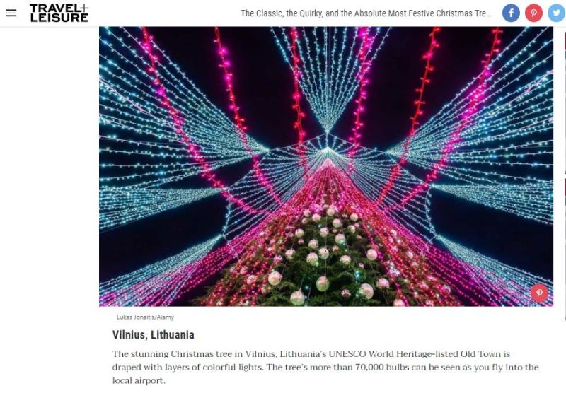 Vienas didžiausių JAV kelionių portalų – beveik 5 milijonų skaitytojų auditoriją turintis „Travel + Leisure“ – Vilniaus eglę įtraukė į įdomiausiųjų pasaulyje sąrašą kartu su ypatingo dizaino eglėmis, papuoštomis garsiajame Paryžiaus prekybos centre „Galeries Lafayette“, Londono Viktorijos ir Alberto muziejuje, Amsterdamo valstybiniame muziejuje „Rijksmuseum“ ir kitose pasaulio vietose.