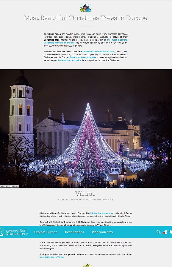 Vienas didžiausių Vokietijos naujienų portalų „Focus“, turintis daugiau nei 50 milijonų skaitytojų auditoriją, gruodžio pradžioje rašė: „Kalėdų magija ir meditacija vietoj pirkinių maratono ir dovanų medžioklės – visi to trokšta. Tačiau kur galima tai rasti? Pavyzdžiui, Vilniuje! Lietuvos sostinė yra UNESCO pasaulio paveldo vieta ir kviečia jus spontaniškam kalėdiniam savaitgaliui. Mėgstantys pasivaikščioti Senamiesčiu, naktinės pelėdos ir sporto mėgėjai – Vilniuje kiekvienas ras tai, ko ieško.“